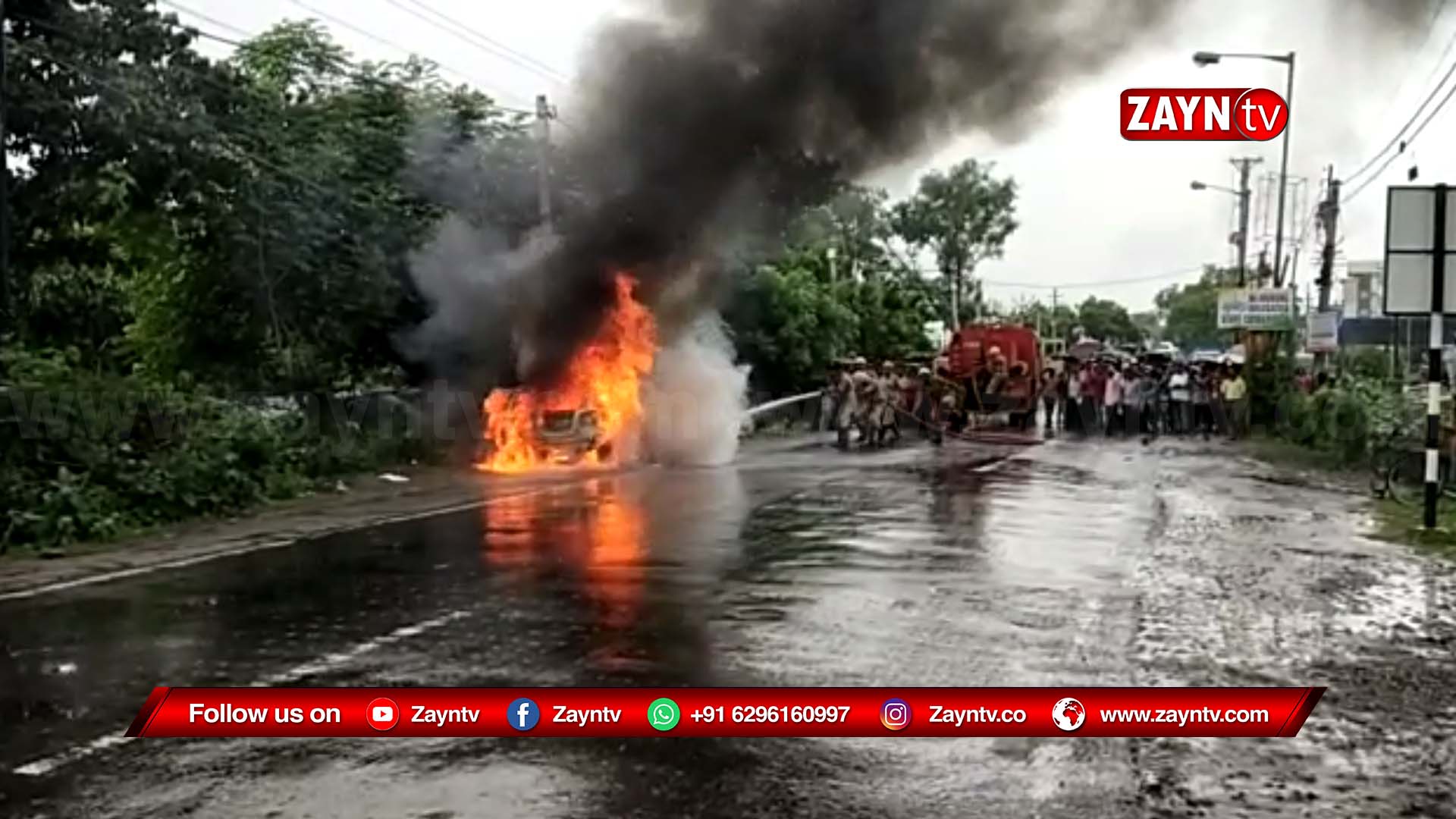 জাতীয় সড়ক দিয়ে যাওয়ার সময় চার চাকার মারুতিতে আচমকার আগুন